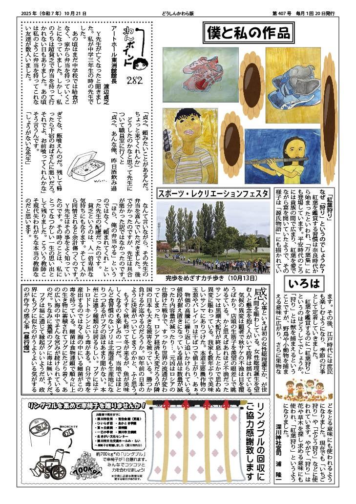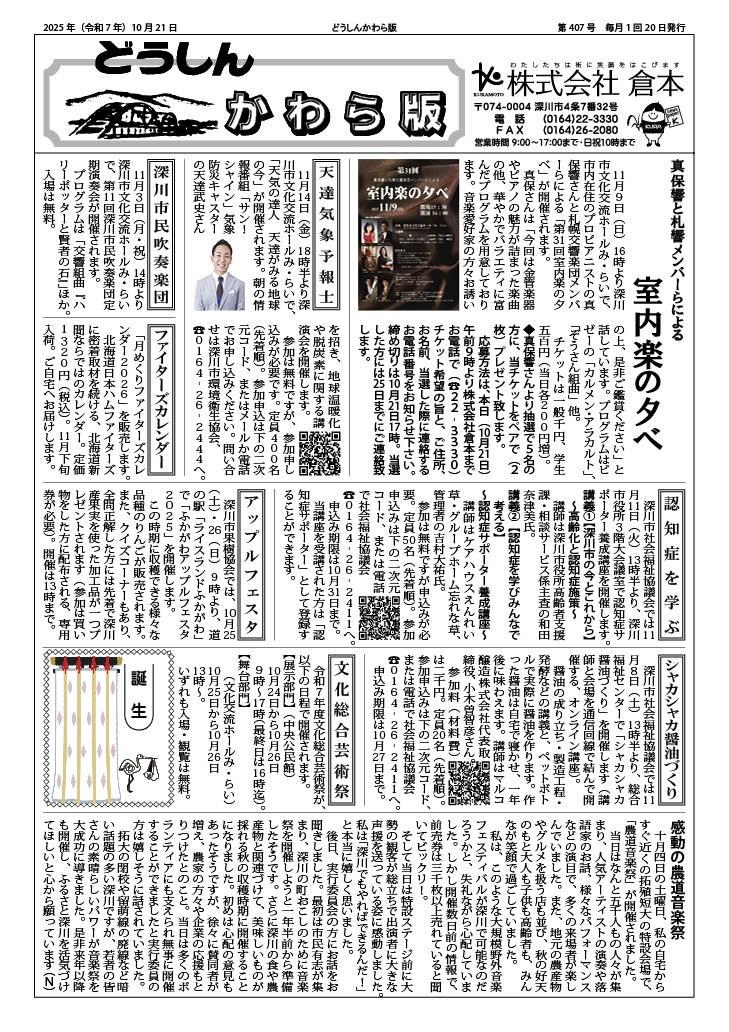 朝刊に「どうしんかわら版」(毎月20日発行)をお届けし、地元の話題を提供しています。