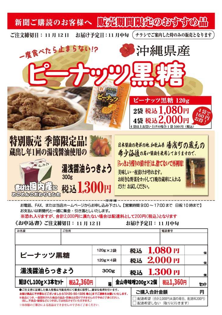 らっきょうは、はじめて取扱いさせていただきます!ピーナッツ黒糖は久しぶりにお取扱いさせていただきます!お申込お待ちしておりますm(__)m※この品物は、地方発送対象外です。
